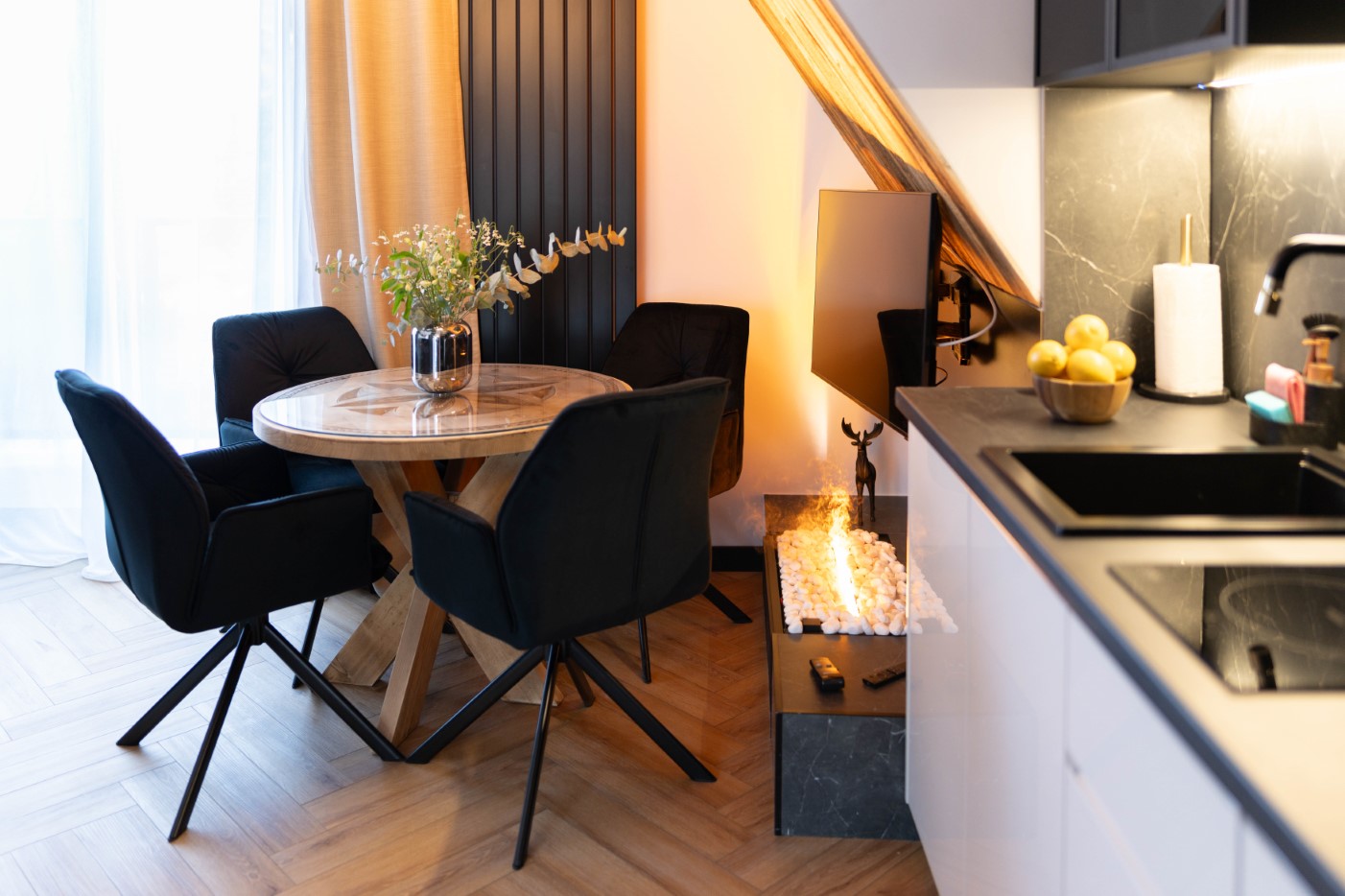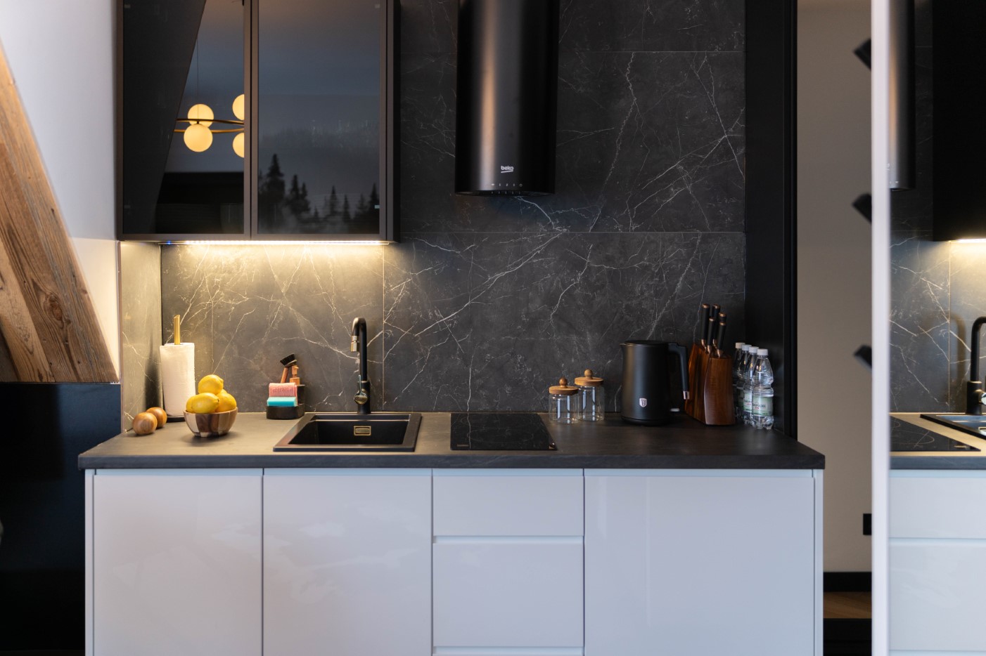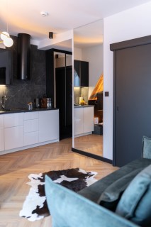 Apartment 9 is part of the Zwierzyniecka Residence complex, an intimate building in the center of Zakopane. This modern apartment with distinct elements of the Podhale style is dedicated for maximum 4 people. Fully equipped kitchenette (two burner induction cooktop, refrigerator, kettle, set of dishes and cutlery, pots and cooking utensils), TV and a bathroom. The equipment of the apartment also includes Wi-Fi access, iron, ironing board, hair dryer, hotel linen, towels. The apartment is located in a quiet area of Zakopane, just 500 m from Krupowki and the same from the Wielka Krokiew ski jump.