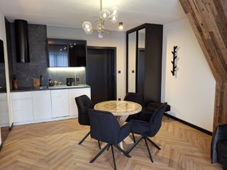 Apartment 11 is part of the Zwierzyniecka Residence complex, an intimate building in the center of Zakopane. This modern apartment with distinct elements of the Podhale style is dedicated for maximum 4 people. Fully equipped kitchenette (two burner induction cooktop, refrigerator, kettle, set of dishes and cutlery, pots and cooking utensils), TV and a bathroom. The equipment of the apartment also includes Wi-Fi access, iron, ironing board, hair dryer, hotel linen, towels. The apartment is located in a quiet area of Zakopane, just 500 m from Krupowki and the same from the Wielka Krokiew ski jump.
