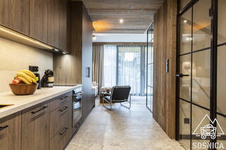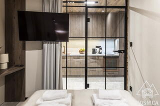 The interior includes 2 bedrooms and a living area - ideal for relaxing in the rhythm of the Tatras. The terrace is a natural extension of the apartment - perfect for morning coffee or evening moments of peace. The fireplace, large windows and carefully selected materials create an atmosphere of closeness to nature and true relaxation.