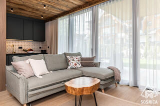 Apartment A12 envelops you in warmth and peace. Designed with a peaceful rest in mind, it offers one bedroom and a comfortable living area. The terrace invites you to catch your breath with a view of the Tatras, and the fireplace gives the interior warmth and coziness. It is the perfect place for a moment just for yourself - or for two. The apartment is located just 500 meters from Krupówki and in the vicinity of the best attractions, both urban and Tatra.