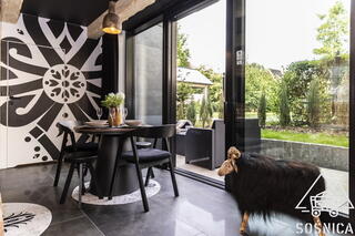 Apartment A24 is a proposal for people who are not looking for obvious interiors. Expressive colors, contrasting combinations and motifs inspired by highlander art give the space a unique character - with a touch of extravagance and a hint of folk rebellion. The glazed, open space combines the kitchen, dining area and living room, creating one common living and meeting zone. A separate bedroom and bathroom with a bidet tap guarantee comfort, and the terrace allows you to catch your breath away from predictability. This is a place that does not pretend and that is why it has its charm.