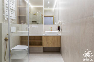 Apartment A38 is a space created for those who seek silence, light and subtle comfort. Bright, natural shades in the interior soothe the senses, and a panoramic window with access to the balcony opens the space to a picturesque view of the Tatra Mountains. This is a place where you can catch your breath - without rushing, without distractions.