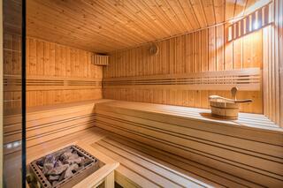 Additional amenities include one free parking space per apartment. Guests can enjoy a spa area with a sauna and jacuzzi, open from 4:00 PM to 9:00 PM, with 50-minute sessions available upon prior reservation with the spa staff. Free bicycle rentals are also available from the same staff. There is also a children's playground on site.