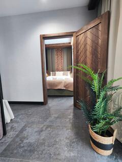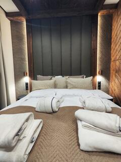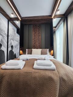 The apartment offers two separate bedrooms, ensuring comfort for both families and groups of friends. Each of them has been designed with attention to comfort and stylistic consistency, promoting peaceful relaxation.