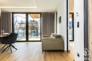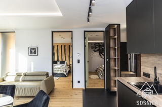 Apartment A49 is an elegant, spacious space designed for comfortable relaxation in a mountain setting. The combination of modern solutions, natural wood, and large windows create a bright, harmonious interior where you can feel an atmosphere of relaxation from the very first moment.