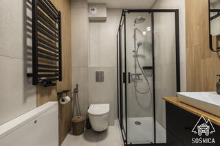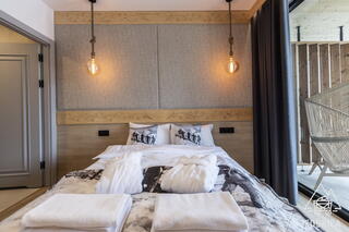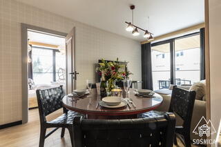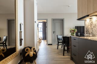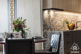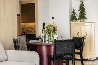 Apartment B15 is a stylish, spacious apartment decorated in a modern style with distinct mountain accents. Natural wood, light colors, and regional details create a cozy and harmonious space perfect for relaxation after a day in the mountains.