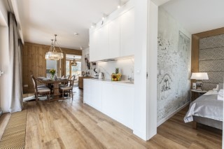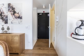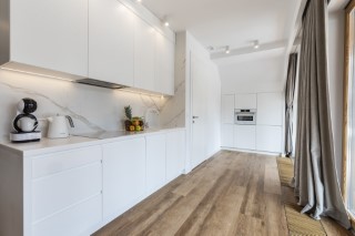 The apartment is decorated in modern style with wooden elements . The apartment has two bedrooms, a living room with a sofa and a fully equipped kitchenette with a fridge, a dishwasher, a coffee machine a microwave . Flat-screen TVs are offered. Apartament features free WiFi. In order to make your apartment shine, we follow a check list, which covers eighty items and we additionally verify the quality of this service.