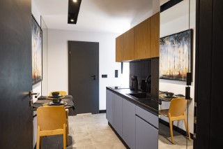 The apartment is decorated in modern style with wooden elements . The apartment has bedroom, a living room with a sofa and a fully equipped kitchenette with a fridge, a dishwasher, a coffee machine a microwave . Flat-screen TV is offered. Apartament features free WiFi. In order to make your apartment shine, we follow a check list, which covers eighty items and we additionally verify the quality of this service.