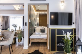 The apartment is decorated in modern style with wooden elements . The apartment has one bedroom, a living room with a sofa and a fully equipped kitchenette with a fridge, a dishwasher, a coffee machine a microwave . Flat-screen TVs are offered. Apartament features free WiFi. In order to make your apartment shine, we follow a check list, which covers eighty items and we additionally verify the quality of this service.