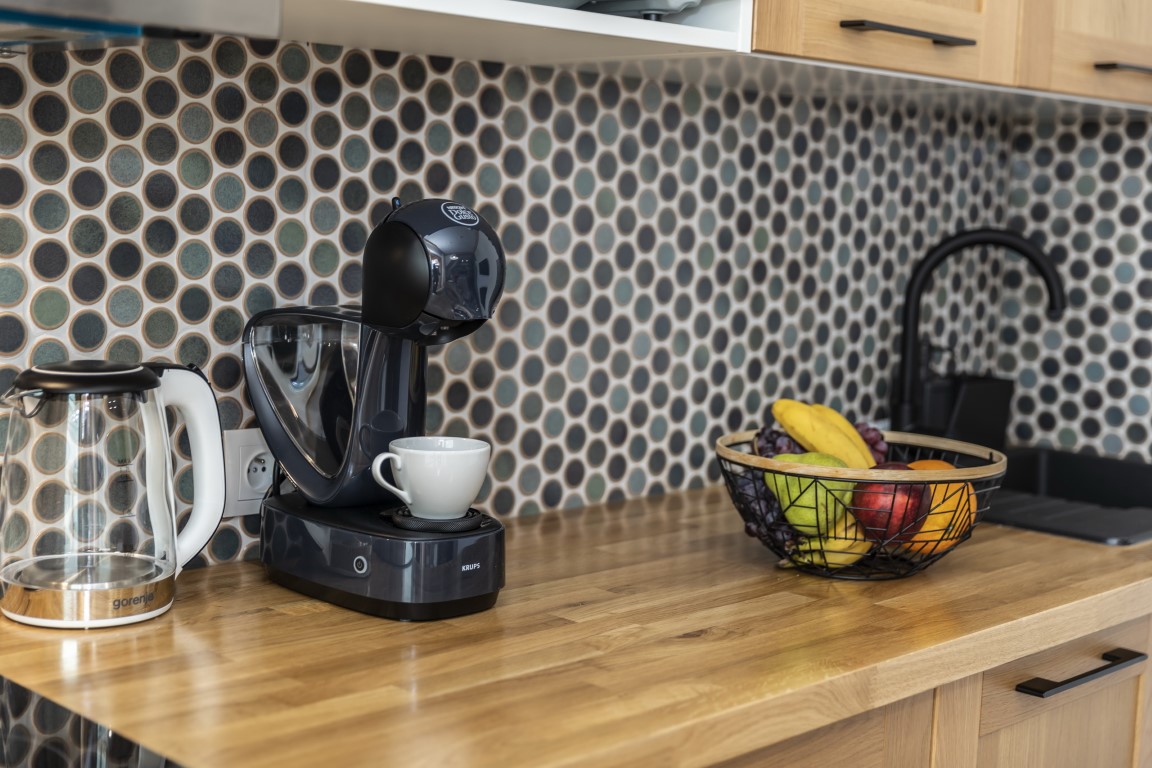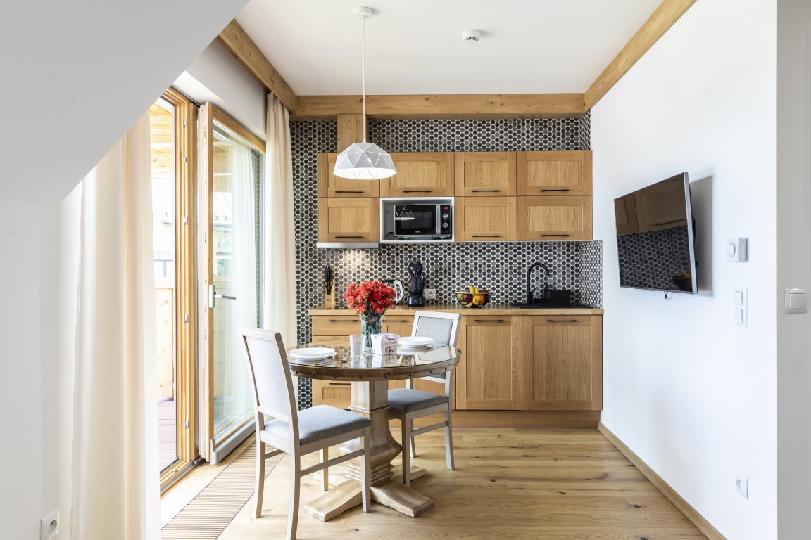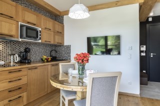 The apartment is decorated in modern style with wooden elements . The apartment has a living room with a double bed and a fully equipped kitchenette with a fridge, a dishwasher, a coffee machine. Flat-screen TV are offered. Apartament features free WiFi. In order to make your apartment shine, we follow a check list, which covers eighty items and we additionally verify the quality of this service.